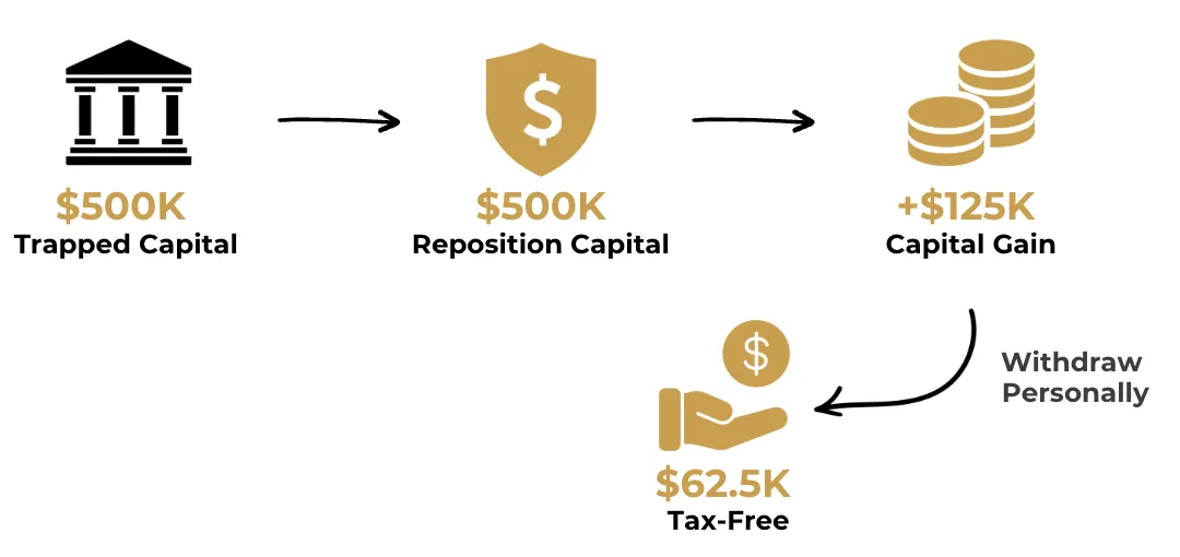 Your retained earnings sit trapped indefinitely — losing value to tax, inflation, and opportunity cost.